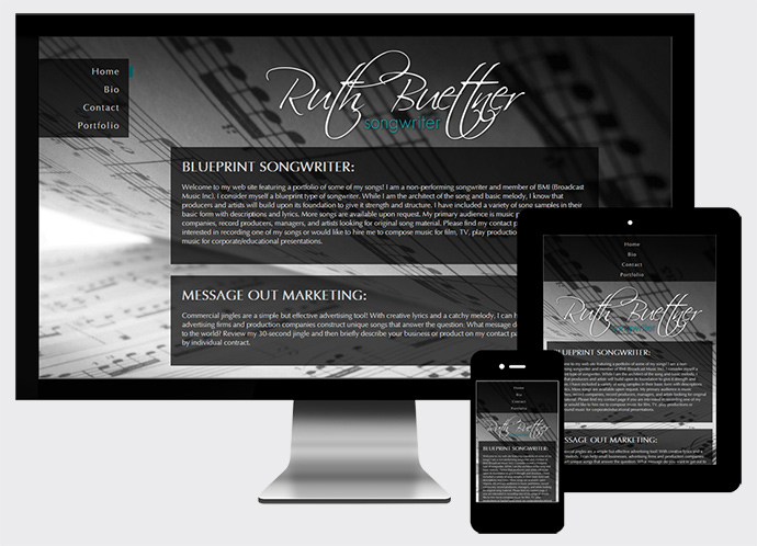 Website created for Ruth Buettner, a blueprint songwriter.