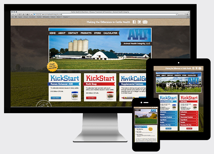 Website created for Animal Health Integrity, a company specializing in agricultural supplements located in Central Wisconsin.