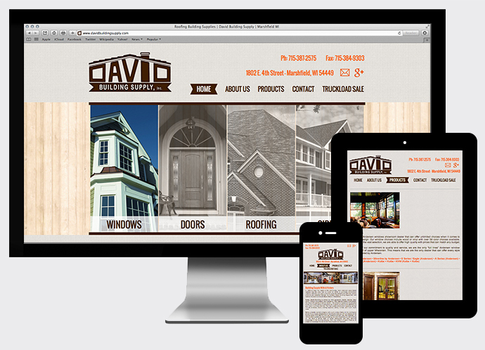 Website created for David Building Supply, a company specializing in high quality construction supplies located in Central Wisconsin.